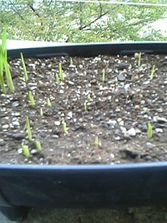 この間秋植え球根を植えかえして、もう芽が出てきました